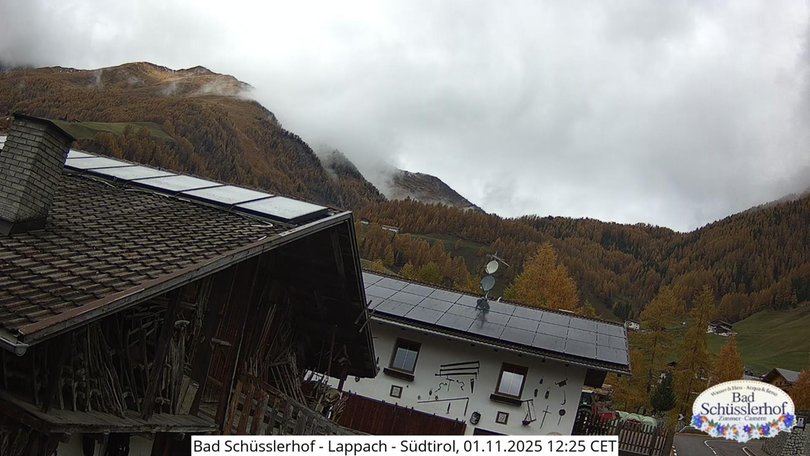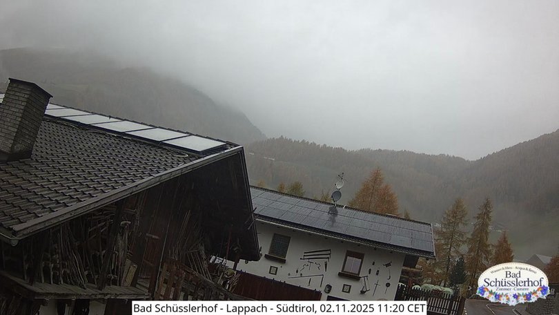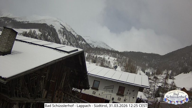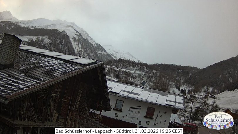 The webcam is located in Lappago / Lappach at 1.432 m above sea level and takes in the view from one of the rooms of the Bad Schüsslerhof farmhouse in the direction of the Gran Pilastro Mountain Group / HochfeilerGruppe. In the background the Punta Bianca / Hoher Weißzint (3.371 m), the top of the Zillertal Alps / Zillertaler Alpen on the border between Italy and Austria. Check out this webcam to discover the weather and snow conditions in this area of the Aurina Valley / Ahrntal, in South Tyrol / Südtirol.