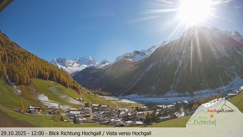 Webcam from the village of Riva di Tures / Rein in Taufers pointing towards Mount Collalto / Berg Hochgall and Rifugio Roma. At 3.436 meters above sea level, it is the highest peak of the Vedrette di Ries group / Riesenfernergruppe and marks the border between Italy and Austria. Check this webcam to know the weather conditions in Tauferer Valley in South Tyrol / Südtirol.