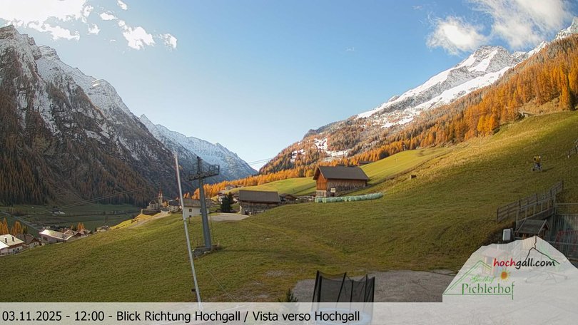 Installed at the Hotel Gasthof Pichlerhof in Riva di Tures / Rein in Taufers, the webcam points towards the center of the village, where you can see the parish church. Behind the bell tower stand some peaks of the Riesenferner Group, which dominate the Tauferer Ahrntal valley. This webcam allows you to discover at any time the weather conditions in the area of the Rieserferner-Ahrn Nature Park, in South Tyrol / Südtirol.