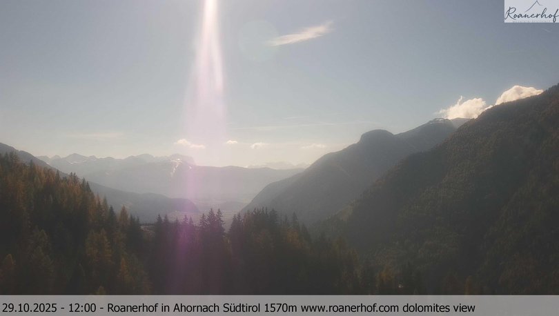 Panoramic view on the Tauferer Tal. You may spot the village of Campo Tures and, in the background, the Kronplatz until the view reaches the Alpe di Fanes and even the Marmolada. This webcam, installed on the Mountain Residence Roanerhof, is perfect to observe the weather conditions in the Tauferer Tal and the surrounding Dolomites.