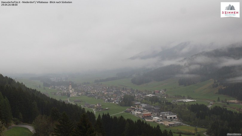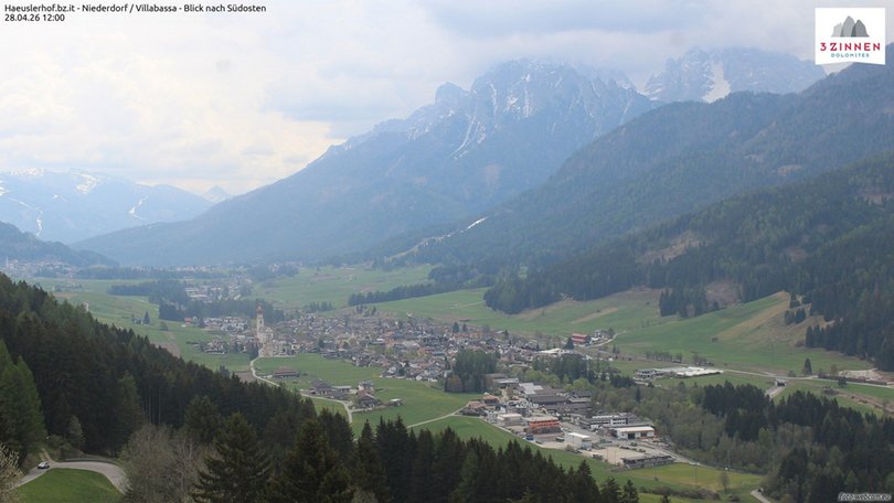 Panorama from Villabassa towards south-east along the Val Pusteria. In the background, you can see the Dolomites of Sesto / Sexten. This webcam is perfect to keep an eye on the weather conditions in Alta Pusteria, between Villabassa / Niederdorf and Dobbiaco / Toblach.