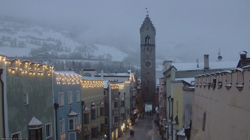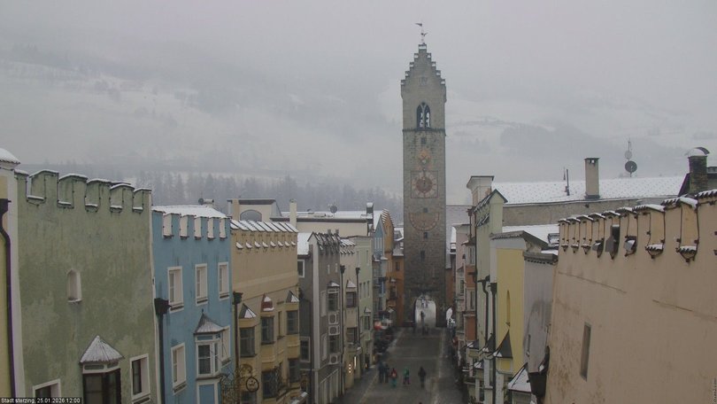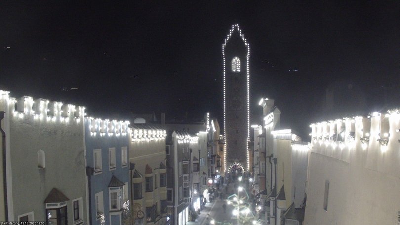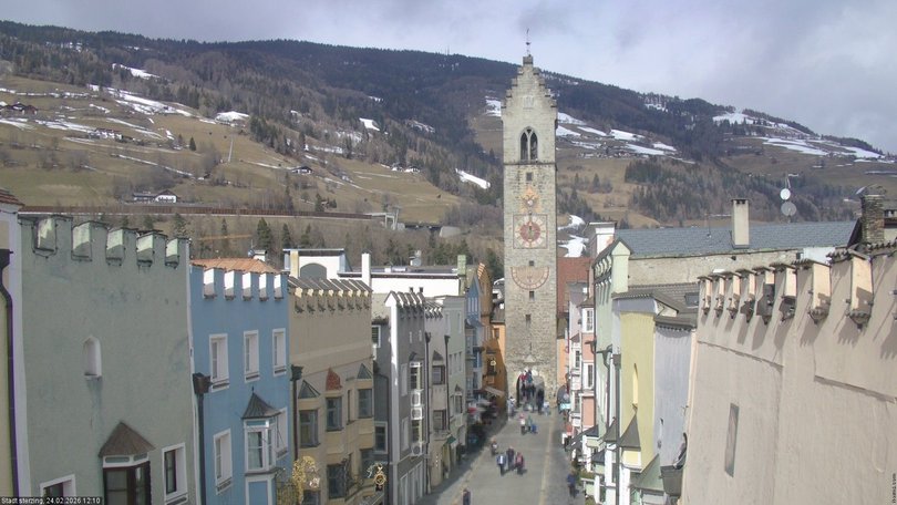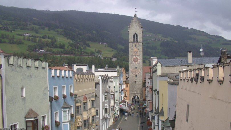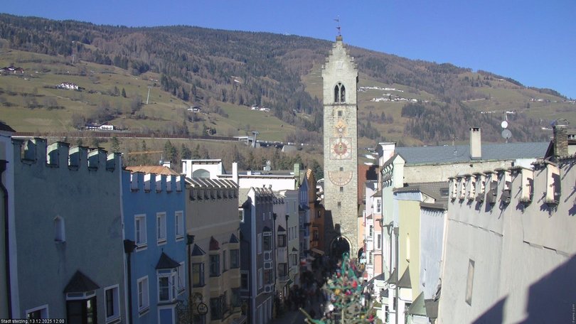 Webcam in the centre of Vipiteno / Sterzing on the Town Square with the Tower of the Twelve, a symbol of this historic village in South Tyrol. The tower of medieval origin is 46 meters high and divides the Old Town from the New Town. During advent the webcam allows you to see the characteristic Christmas market of Vipiteno / Sterzing. With this webcam the weather conditions in Vipiteno / Sterzing are always just a click away!