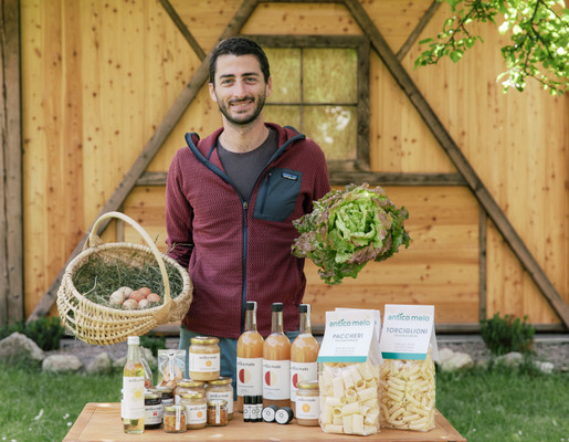 We are Mauro and Jessica, and together we run the small Antico Melo farm in Fiera di Primiero, in the heart of Trentino and the Dolomites.