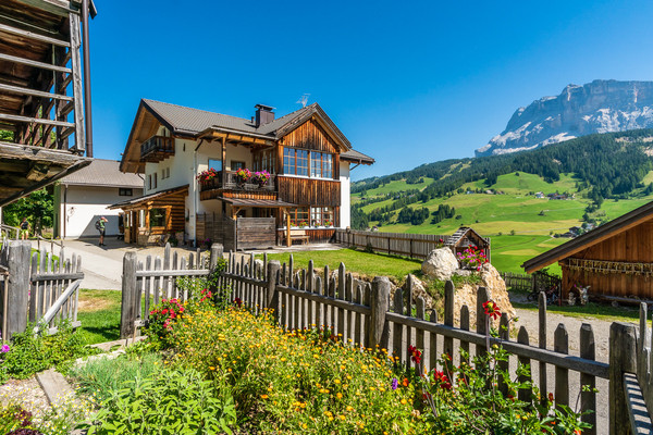 Di fronte alla casa infatti si ergono alcune tra le più belle cime delle Dolomiti, il Sas dla Crusc affiancato dal Lavarella e dal Conturines.