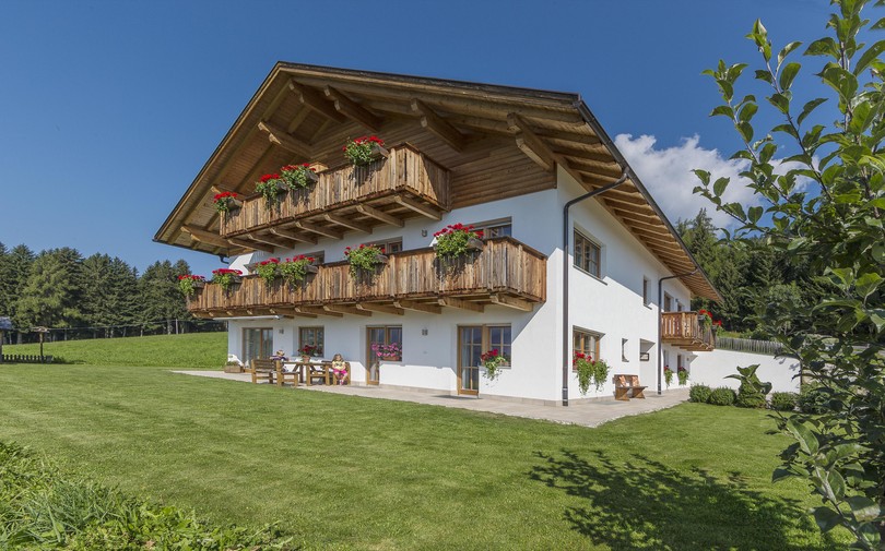 Il maso offre quattro confortevoli appartamenti con balcone, composti da cucina-soggiorno con divano (allargabile in un letto matrimoniale), una o due camere da letto, bagno con doccia, TV-SAT, cassaforte e tutto il necessario per i bebè (lettino, biancheria e seggiolone). La cucina è fornita di frigo, forno, una piastra per la cottura, una macchina da caffè e una lavastoviglie. La lavatrice a pagamento è disponibile in cantina.