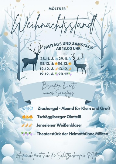 La "Schützenkompanie Mölten" è lieta di incontrarvi e augura a tutti un sereno periodo d’Avvento.
