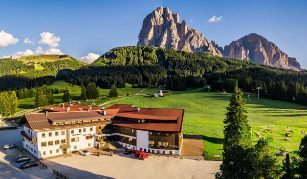 Ogni mattina, da quando l’albergo ha aperto nel 1931, il sole che sorge a est del Sassolungo abbraccia l’edifico dell’Hotel Monte Pana a Santa Cristina, in Val Gardena. Grato, esso ricambia l’abbraccio cingendo, con la sua caratteristica forma a U, l’iconica mole di questa vetta, tra le più amate delle Dolomiti. Per chi alloggia nel nostro hotel il loro cuore è a portata di mano. Basta semplicemente mettere un piede fuori dall’albergo per incamminarsi nei boschi, su, verso le cime, oppure prendere la seggiovia per arrivare ad alcuni dei più suggestivi caroselli sciistici d’Europa. All’Hotel Monte Pana la natura e le emozioni che essa sa regalare sono a portata di mano. Basta saperle cogliere.