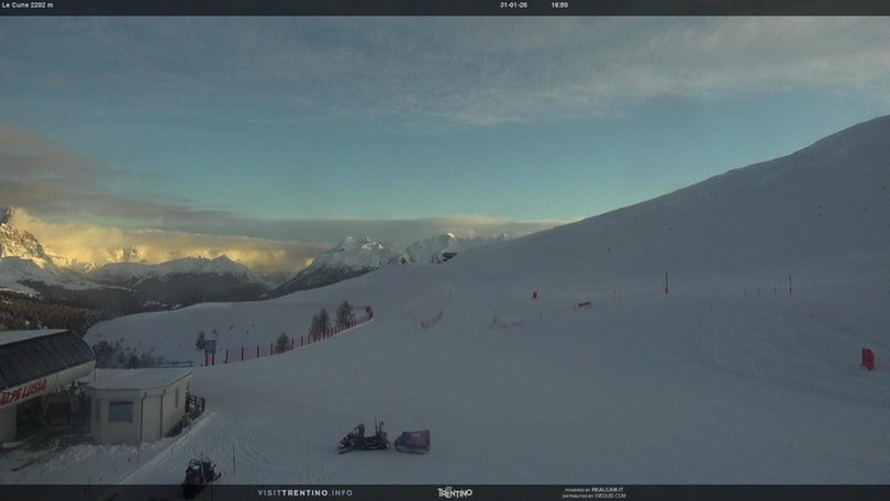 La webcam offre una bella inquadratura sulla Cima Lastè, sulle Pale di San Martino e sulla catena del Lagorai. In primo piano la stazione a monte della cabinovia Valbona-Le Cune. Sullo sfondo, a destra, la stazione a monte della seggiovia Campo-Le Cune. La webcam è un ottimo punto di osservazione per scoprire in tempo reale le condizioni meteo e della neve nella Ski Area Alpe Lusia, ai piedi delle Dolomiti del Trentino.