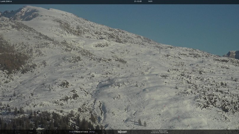 La webcam è puntata verso la stazione a monte della seggiovia Lastè nella Ski Area Alpe Lusia tra Moena in Val di Fassa e Bellamonte in Val di Fiemme. La seggiovia serve la veloce pista Lastè e la bellissima e varia pista Zirmes. Nelle immagini di questa webcam si possono ammirare le larghe curve della pista Lastè che si contraddistingue per il suo percorso panoramico. In estate l’Alpe Lusia si trasforma in una verde area escursionistica. Sia in inverno che in estate la webcam è perfetta per scoprire le condizioni meteo di questa zona del Trentino.