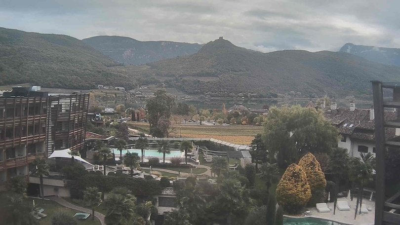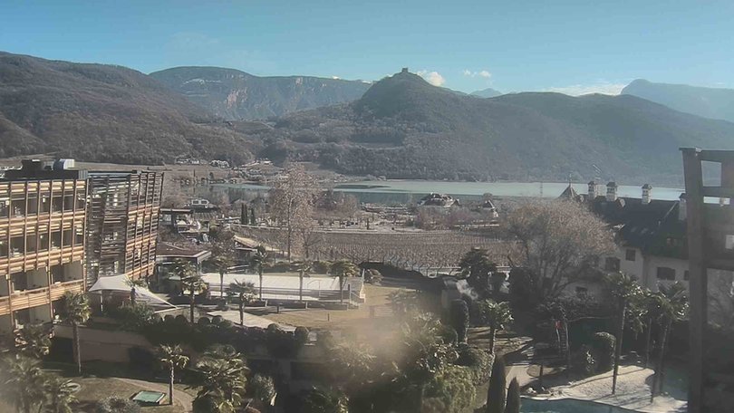La webcam si trova presso l’Hotel Seeleiten di Caldaro sulla Strada del Vino e inquadra il Lago di Caldaro, il lago balneabile più grande dell’Alto Adige e il più caldo delle Alpi. Sullo sfondo, al centro, si intravedono le rovine di Castelchiaro, un antico castello in cima a un colle del Monte di Mezzo. In primo piano parte dell’hotel con il suo giardino, ricco di palme e incorniciato dai vigneti, come è tipico del sud dell’Alto Adige. Consulta questa webcam per vedere in diretta le condizioni meteo in questa zona a sud di Bolzano.