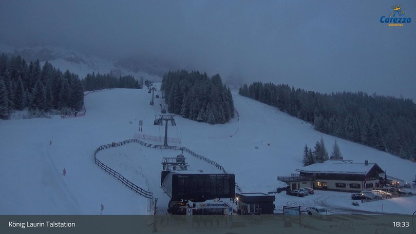 Questa webcam mostra la stazione a valle della cabinovia König Laurin / Re Laurino nel comprensorio sciistico di Carezza. Solo i tratti iniziale e finale dell'impianto sono visibili dall'esterno, il resto del percorso si sviluppa sotto terra. Si tratta di un avvenieristico progetto dell'architetto Werner Tscholl che ha voluto preservare al meglio il meraviglioso territorio e il suo paesaggio ai piedi delle Dolomiti. La webcam permette di vedere in diretta la situazione meteo e della neve in questa stazione sciistica a Nova Levante, in Alto Adige.