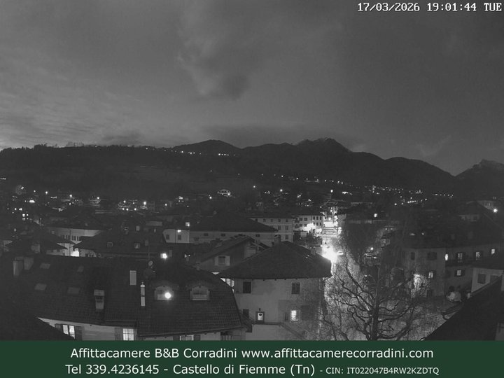 Con questa webcam puoi vedere l'abitato di Castello di Fiemme e, sullo sfondo, l'imponente Corno Nero. Viste spettacolari del paese e delle Dolomiti di Fiemme, ideali per monitorare il meteo nel Trentino anche quando non si è in vacanza.
