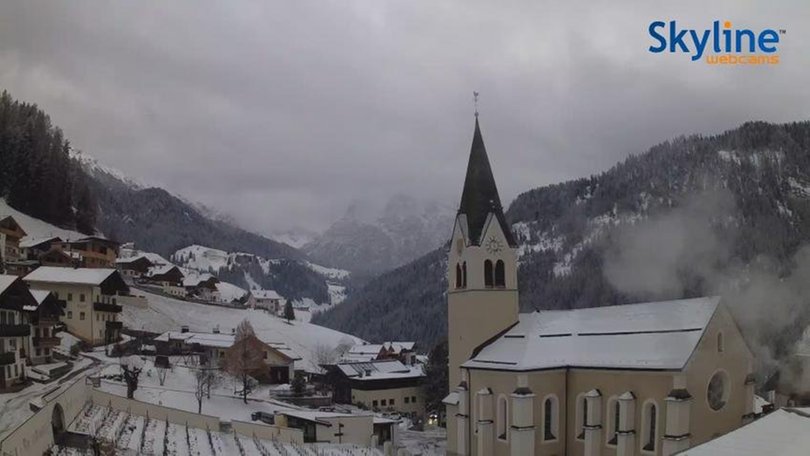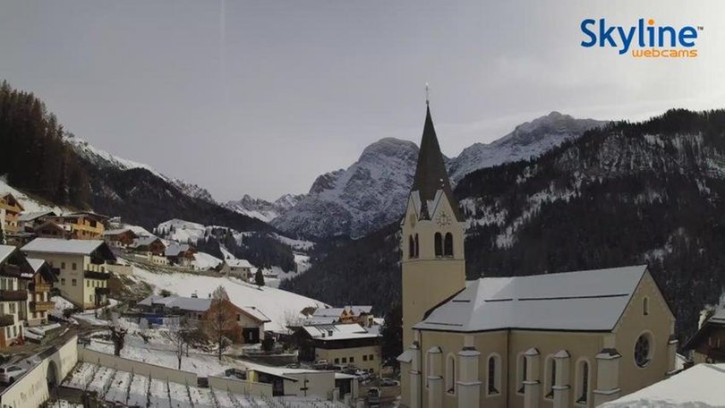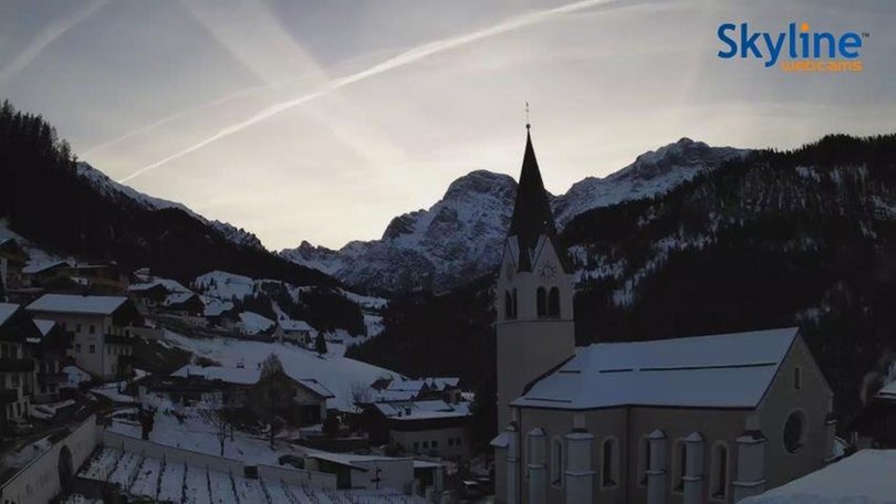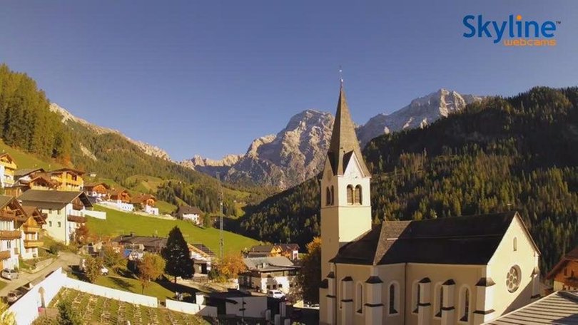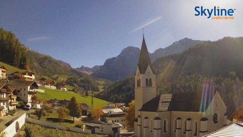 La webcam, installata sul tetto dell’Hotel Pider, offre una bella inquadratura sulla chiesa parrocchiale di La Val. La Chiesa neoromanica di San Genesio, edificata nel 1874, vanta un campanile alto 42 metri. Sullo sfondo la Cima Nove e la Cima Dieci, vetta più alta della lunga cresta del Sasso di Santa Croce che domina la Val Badia. La webcam è un ottimo punto di osservazione per vedere le condizioni del tempo in questa parte dell’Alta Badia, ai piedi delle Dolomiti dell’Alto Adige.