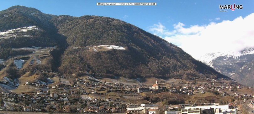 La webcam si trova presso il centro sportivo di Marlengo. Offre uno scorcio sul comune con il campanile della Chiesa Parrocchiale e la Montagna di Marlengo. A destra parte del Gruppo di Tessa, nel Parco Naturale Gruppo di Tessa. Orientata verso est, questa webcam è ideale per ammirare l’alba e per controllare in ogni momento le condizioni meteo e della neve in questa suggestiva località dell’Alto Adige.