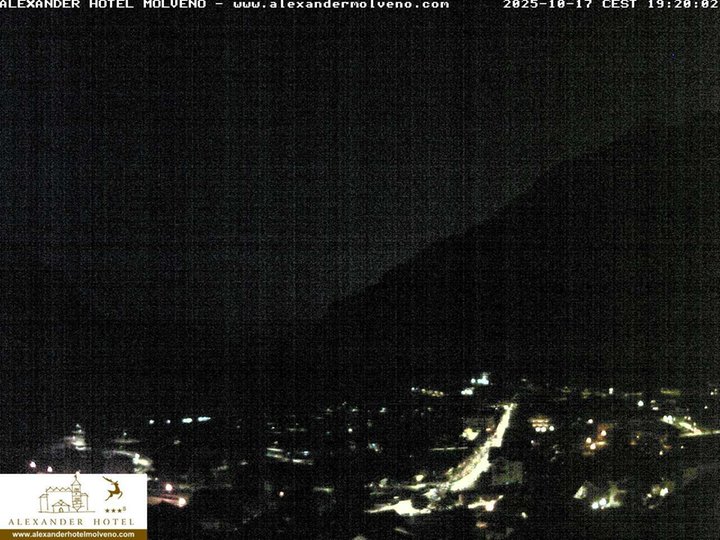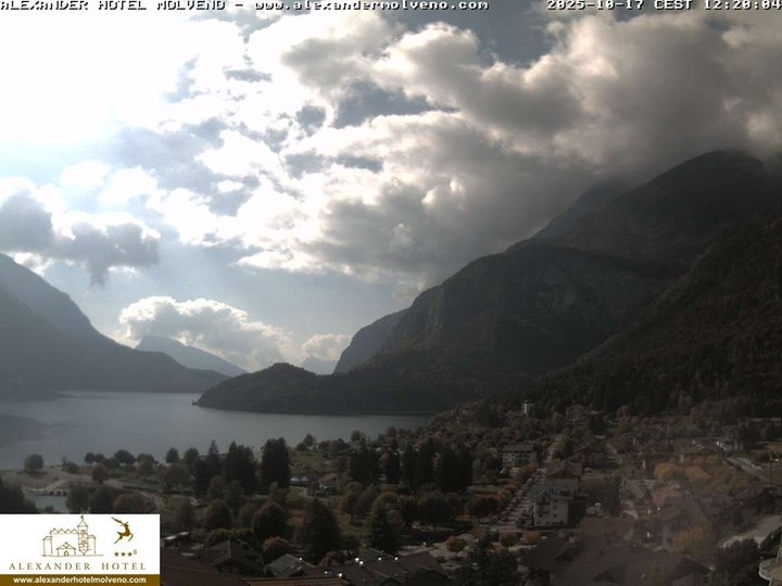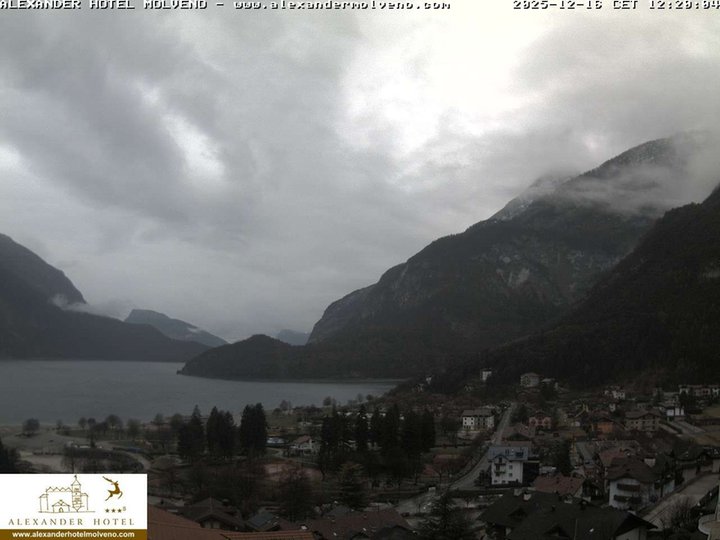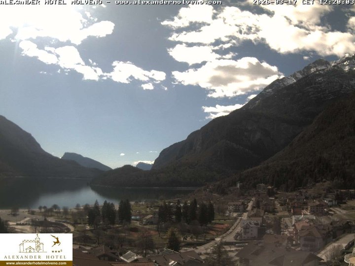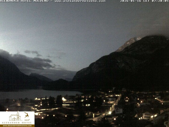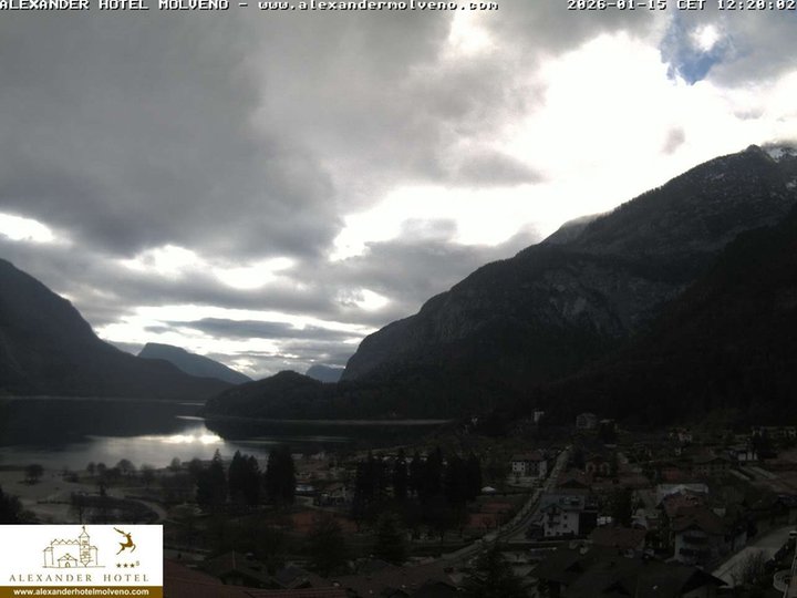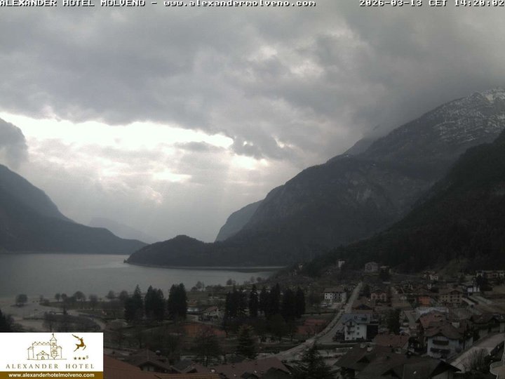 Vista panoramica su Molveno con il suo rinomato lago, sulla destra dal Lido di Molveno si alzano maestose le Dolomiti di Brenta, fino ai 3.151m s.l.m. della Cima Brenta. Questa webcam, installata sul tetto dell’Hotel Alexander, è ideale per osservare le condizioni meteo nella zona del “lago più bello d’Italia” per la qualità dell'acqua, della spiaggia e i servizi per la balneazione.