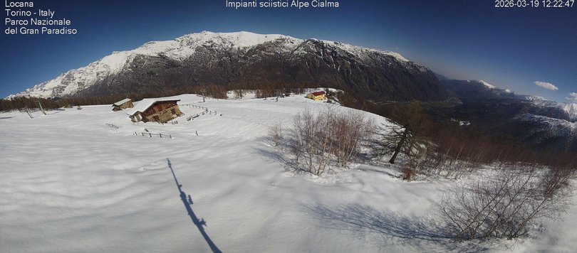Vista panoramica sull’Alpe Cialma. Dalla webcam dell’Alpe Cialma, situata in località Carello, è possibile osservare una parte delle piste da sci del comprensorio sciistico Alpe Cialma che in estate si trasformano in verdi pascoli alpini con la Valle Orco sullo sfondo. Trovandoci ai margini del Parco Nazionale del Gran Paradiso, le montagne del Gran Paradiso e di Ribordone fanno da cornice all’Alpe Cialma. Tra le punte più note che si possono ammirare troviamo (da destra verso sinistra) il Monte Colombo, Moncimour, il Becco di Valsoera, la Torre del Gran San Pietro, Roccia Viva, la Becca di Gay e il Becco della Tribolazione. Consulta la webcam per scoprire le condizioni meteo e della neve di questa parte delle Alpi Torinesi.