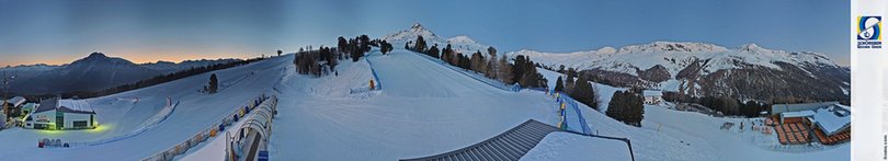 Vista panoramica sulla stazione a monte di Belpiano, nel comprensorio sciistico, escursionistico e ciclistico Belpiano - Malga San Valentino al Passo Resia. D'inverno la webcam riprende il campo scuola di sci per bambini. Il comprensorio sciistico offre 65 km di piste e 11 impianti di risalita che salgono fino a 2.350 m, la meta ideale per gli amanti di sci e snowboard e le famiglie! D'estate, l'area è un paradiso per escursioni a piedi e in MTB, con 200 km di percorsi escursionistici e 50 km di MTB trails che garantiscono un'esperienza indimenticabile.