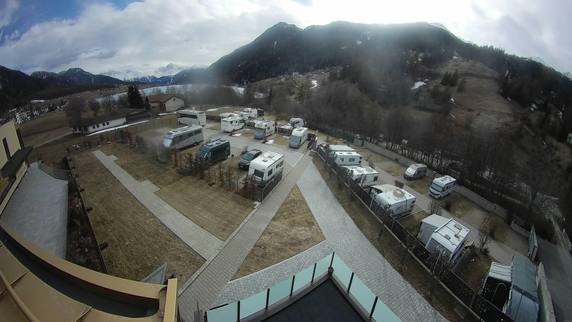 Questa webcam mostra in primo piano le piazzole per caravan del campeggio Zum See affacciato sulla riva nord del Lago di San Valentino e circondato dalle cime più alte dell'Alto Adige. Il camping è aperto tutto l'anno e si trova a pochi passi dal centro del paese San Valentino alla Muta, nell'area vacanze del Passo Resia. La cima più alta che si può scorgere al di là del Lago è il maestoso Ortles che raggiunge quasi 4.000 metri di altezza. Sullo sfondo, verso destra, il monte Seeköpfl domina il paesaggio, mentre all’estremo margine destro è visibile un piccolo tratto del comprensorio sciistico Belpiano-Malga San Valentino / Schöneben-Haideralm. La webcam è perfetta per tenersi aggiornati sulle condizioni del meteo in questa zona della Val Venosta.