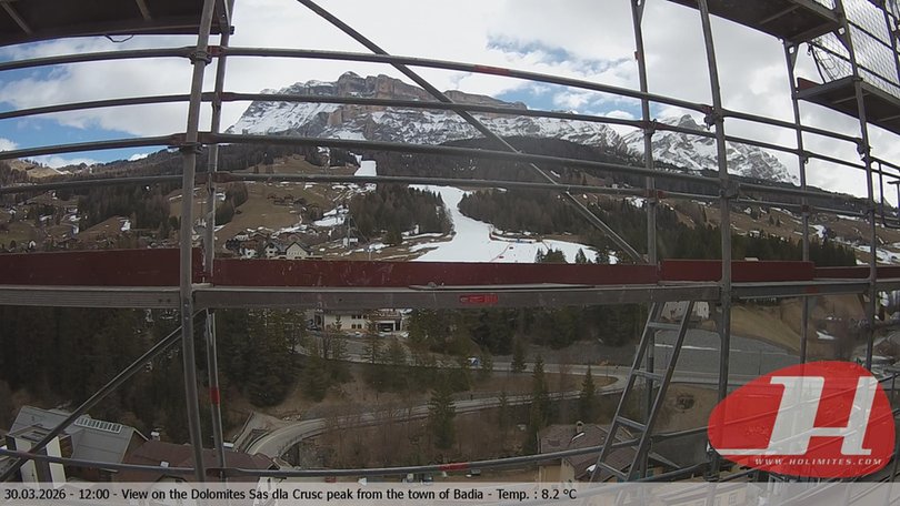 La webcam offre una bella inquadratura dal paese di Badia verso il Sasso di Santa Croce (Sas dla Crusc in ladino) che, con la sua parete verticale di 900m, domina l’Alta Badia. Sullo sfondo, le cime principali di questo gruppo delle Dolomiti. Questa webcam permette di osservare il fenomeno dell’enrosadira che all’alba e al tramonto caratterizza le Dolomiti facendole assumere un colore rossastro e che sul Sasso Croce è spesso particolarmente evidente. Con queste immagini le condizioni del tempo in Alta Badia sono sempre a portata di click!