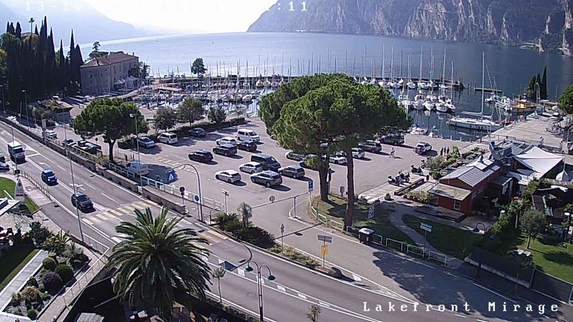 Questa webcam del Lake Front Hotel Mirage offre un ottimo punto di osservazione verso il porto San Nicolò a Riva del Garda. Sulla destra si intravede il sentiero del Ponale che collega Riva con il lago di Ledro. A sbalzo sul Lago di Garda, il percorso è noto per essere uno dei più belli di tutto il Garda e d’Europa. Sulla sinistra si scorgono i massicci del Baldo e il monte Altissimo.