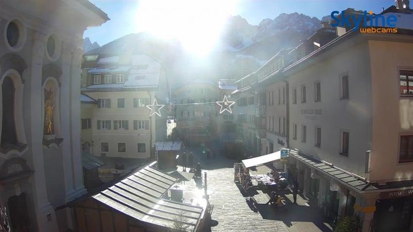 La webcam inquadra il centro di San Candido con la piazza di San Michele e l’area pedonale, molto amata dai turisti per le botteghe di artigianato artistico locale. A destra la chiesa barocca di San Michele, sullo sfondo l’imponente Rocca dei Baranci (in tedesco: Haunold), cima più alta del gruppo Rondoi-Baranci, nelle Dolomiti di Sesto.Questa webcam del Boutique & Gourmet Hotel Orso Grigio è perfetta per scoprire in ogni momento le condizioni meteo a San Candido, nella zona del Parco Naturale Tre Cime, in Alto Adige.