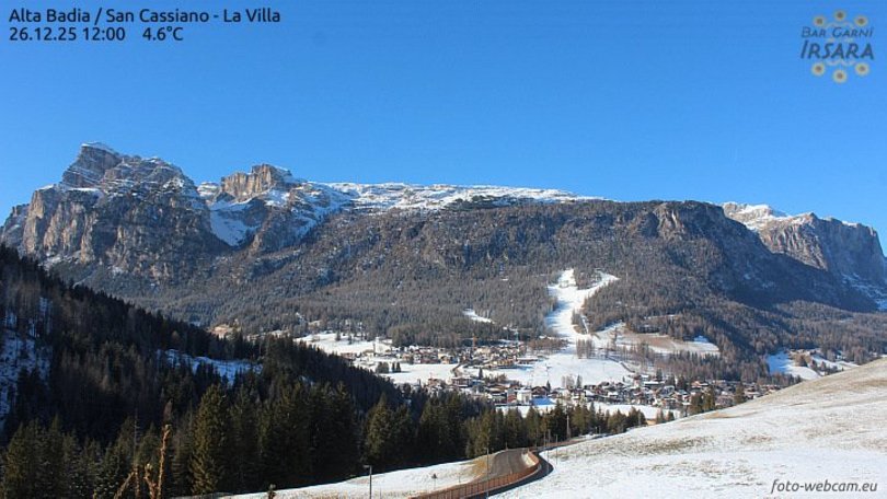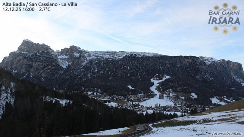 La webcam si trova presso il Garni Irsara nel paese di San Cassiano. La magnifica vista che si gode da questa webcam abbraccia il paese di La Villa sovrastato dal Sassongher e dal Gardenaccia alle spalle. Con questa webcam si vedono bene le piste da sci del Gardenaccia e le condizioni del tempo in Alta Badia.