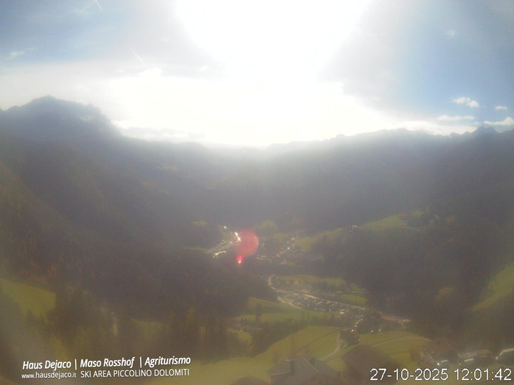 Vista verso l'impianto di risalita di Piccolino, frazione di San Martino in Badia. La cabinovia Piculin, conduce al Piz de Plaies da dove si può scendere verso San Vigilio. Questa webcam offre una bellissima inquadratura su San Martino in Badia con il suo Rio Gadèra. Nelle belle giornate la vista prosegue verso sud lungo la Val Badia e sullo sfondo a sinistra si riesce a vedere anche il Monte Cavallo. Questa webcam, installata sul Maso Rosshof - Haus Dejaco, è ideale per scoprire le condizioni del meteo e della neve in Val Badia.