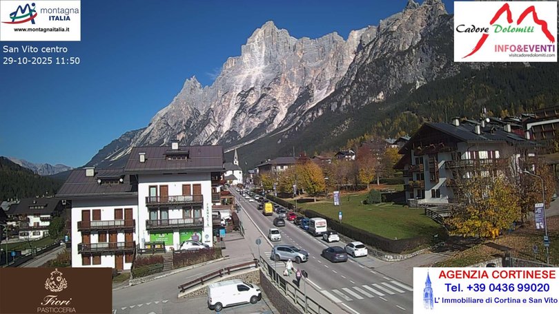 La webcam si trova sull’edificio che ospita la sede del Consorzio e Ufficio Turistico di San Vito di Cadore. Da questa webcam si vede il Corso Italia che attraversa il centro del paese. In fondo alla strada si intravvede la Chiesa di San Vito sulla quale svetta la Croda Marcora del Gruppo Sorapìs, una delle vette oltre i 3.000 metri delle Dolomiti.