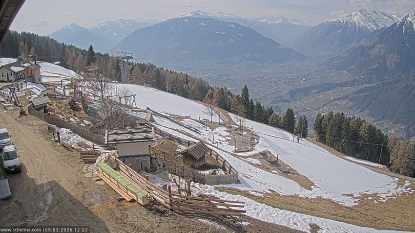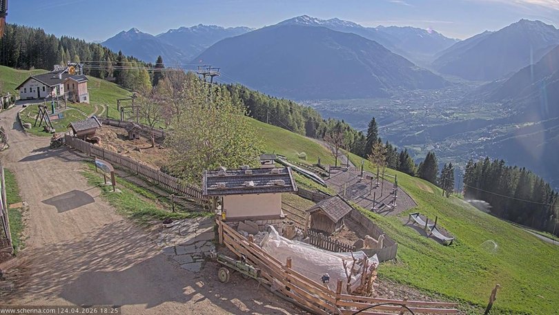 Panorama verso la zona di Merano con i paesi di Lagundo, Tirolo, Rifiano e Parcines, in direzione Val Venosta - Passo Resia. Questa webcam, installata sulla Taser Alm, è perfetta per essere sempre aggiornati sulle condizioni meteo del Meranese.