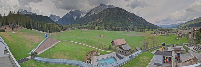 Vista verso il Parco Naturale Tre Cime dal Family Resort Rainer a Moso, frazione di Sesto in Alta Pusteria. Questa webcam offre uno scorcio panoramico su Croda Rossa (o Cima Dieci), Cima Undici e Punta dei Tre Scarperi (da sinistra a destra) e su un verde prato di montagna sul quale d’inverno entra in funzione il piccolo skilift Moos, dal quale è possibile raggiungere Bagni di S. Giuseppe e salire nell’area sciistica Croda Rossa. Il comprensorio offre due cabinovie, tre skilift e una pista da slittino ed è collegato al più ampio 3 Cime Dolomiti con più di 100km di piste da sci. Questa live cam è ideale per scoprire le condizioni meteo e della neve a Sesto.