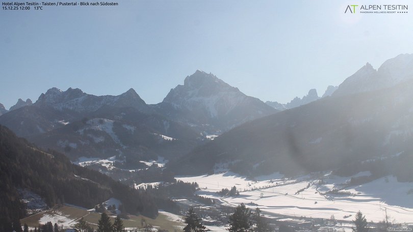 La webcam si trova all’ultimo piano dell’Hotel Alpen Tesitin di Tesido. Offre una stupenda inquadratura sulle Dolomiti di Braies, tra cui svetta, al centro, il Picco di Vallandro. In primo piano si vedono i prati e i boschi che circondano Tesido e Monguelfo. Questa webcam permette di vedere in ogni momento le condizioni meteo e della neve in questa zona della Val Pusteria, in Alto Adige.