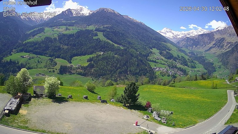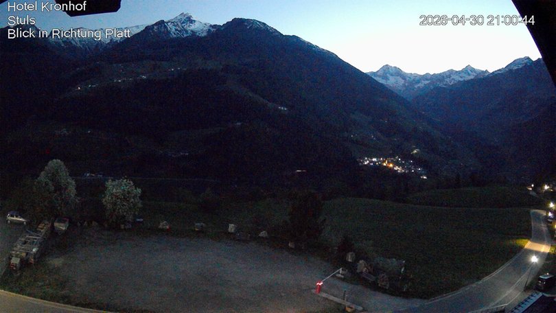Vista panoramica su Plata in Val Passiria e le montagne circostanti. Il paese è ben visibile al centro dell’immagine e con un po’ di fortuna si riesce a individuare anche la chiesa di S. Orsola. Sulla sinistra si alza il Platter Berg o Strizonjoch, mentre sulla destra si entra nella Val di Plan che porta verso le cime più alte del Parco Naturale Gruppo di Tessa. Questa webcam, installata presso l’Hotel Kronhof, è il punto di osservazione ideale per scoprire le condizioni meteo e della neve in questa parte della Val Passiria.