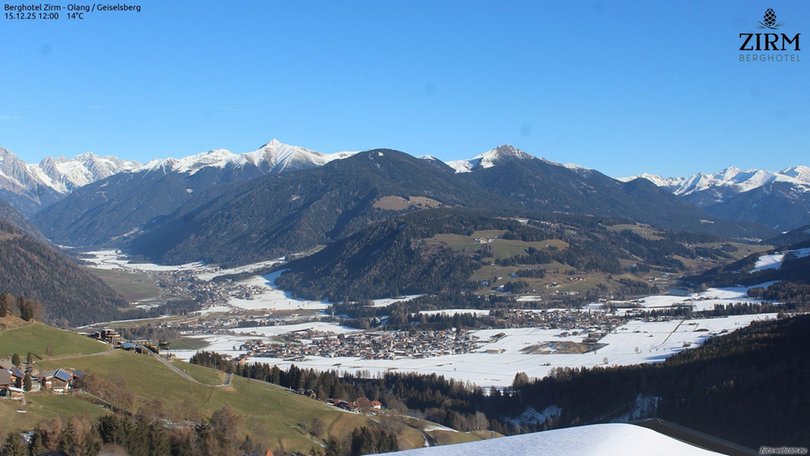 La webcam è posizionata sul tetto del Berghotel Zirm, nella frazione di Sorafurcia, a ridosso delle piste del comprensorio sciistico Plan de Corones. Offre una visuale panoramica sul comune di Valdaora. Nella parte sinistra dell’immagine si estende la Valle di Anterselva mentre a destra la Val Pusteria, con il lago artificiale di Valdaora, denominato anche Lago di Monguelfo. Questa webcam è ideale per scoprire in tempo reale le condizioni meteo di questa zona dell’Alto Adige, vicino a Brunico.