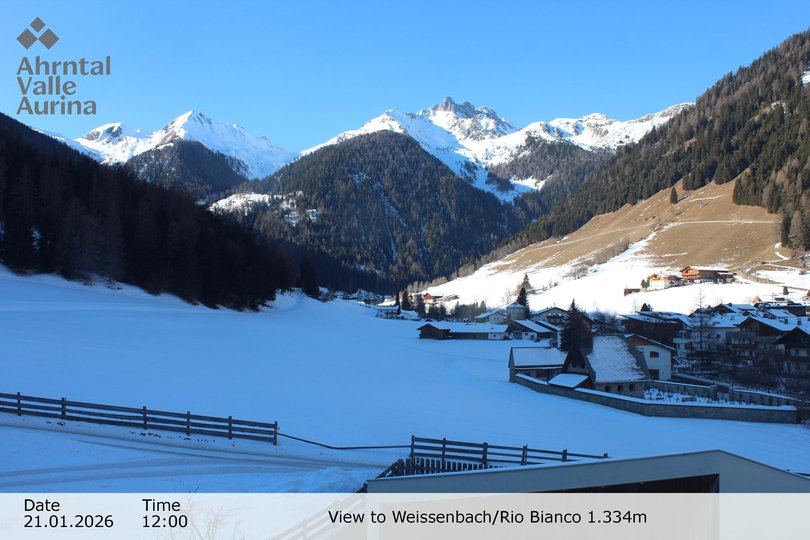 Vista panoramica su Rio Bianco, da sempre noto luogo di pellegrinaggio grazie alla sua chiesa del XVI secolo. Il paese, che prende il suo nome dal torrente glaciale di color bianco latte che lo attraversa, è meta ambita sia d’estate che d’inverno. Con questa webcam le condizioni meteo e della neve a Rio Bianco sono sempre a portata di click!