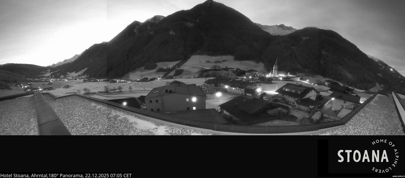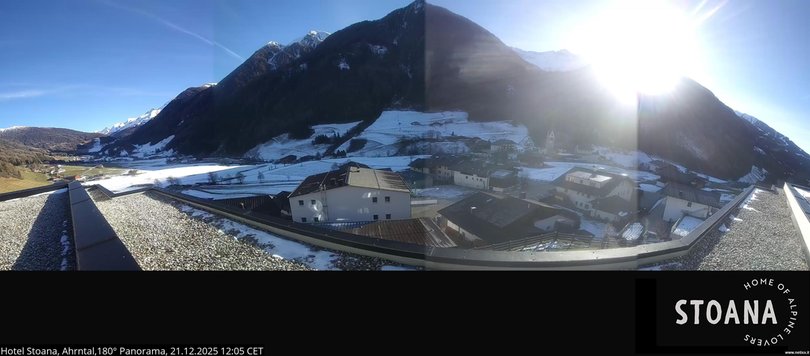 Questa webcam si trova sul tetto dell’Aparthotel Stoana e offre una vista a 180 gradi dal paese di San Giacomo sulla Valle Aurina. Al centro dell’immagine svetta il campanile della parrocchia di S. Giacomo, a destra si vede la parte a valle del comprensorio sciistico Klausberg, mentre a sinistra il panorama va in direzione nord-est, verso il paese di San Pietro e la fine della Valle Aurina. La webcam è ideale per scoprire in qualsiasi momento le condizioni meteo in Valle Aurina.