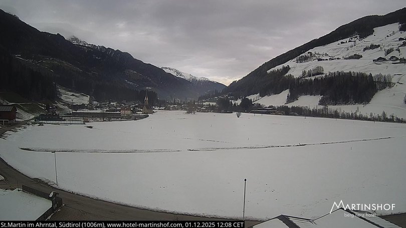 Vista dall’hotel Martinshof verso est, sul paese di San Martino in Valle Aurina, con la sua chiesa. San Martino fa parte della frazione di San Giovanni in Valle Aurina, ambita meta di montagna sia per le vacanze estive che per quelle invernali. Questa webcam offre un magnifico scorcio sulla valle Aurina, la zona più a nord di tutto il territorio italiano.
