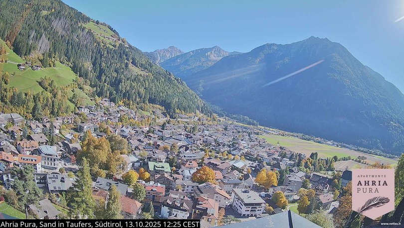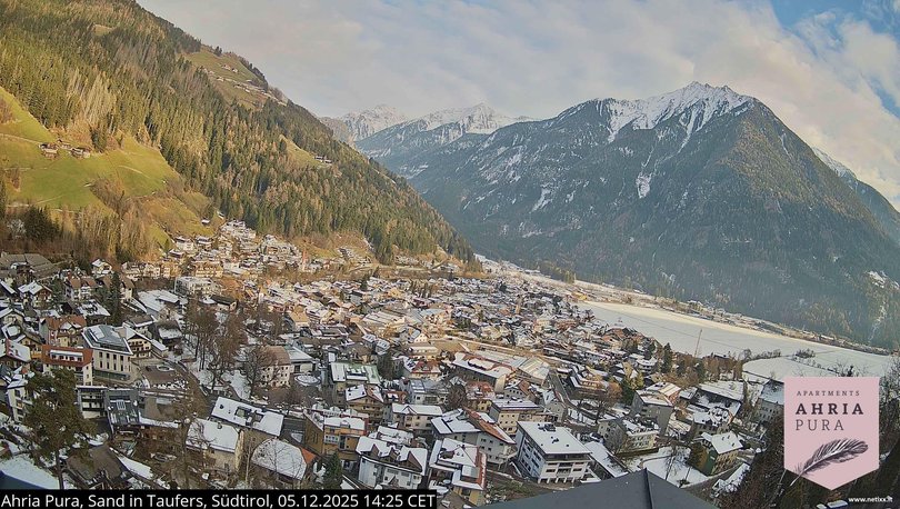 La webcam mostra il panorama verso Brunico dagli appartamenti AhriaPura a Campo Tures. Da sinistra a destra le cime Gatternock, Achternock, Wasserfallspitz e Blossberg sovrastano la Valle Tures. In questa zona turistica le attività da fare all'aria aperta sono molteplici, dall'escursionismo nel Parco Naturale Vedrette di Ries-Aurina all'alpinismo, dalla mountain bike allo sci nel comprensorio Speikboden, fino alla canoa, al parapendio, deltaplano, alla pesca e molto altro. Utilizzate questa webcam per scoprire che tempo fa in Alto Adige nella zona della Valli Aurina e di Tures.