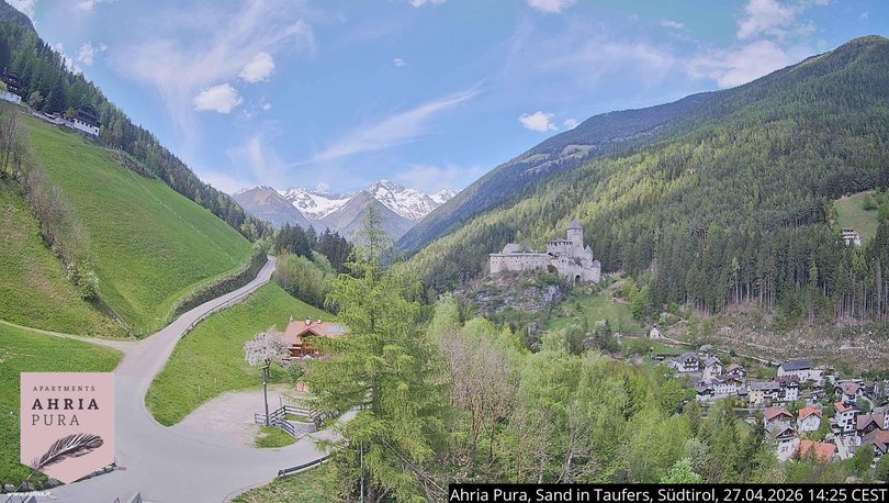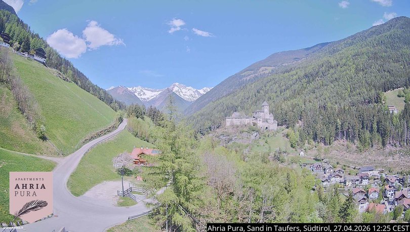 Questa webcam offre una bella vista del Castello di Tures con il sottostante paese di Campo Tures. Il castello, che può anche essere visitato, domina la Valle di Tures a sud e sorveglia l'ingresso della Valle Aurina verso nord. Sullo sfondo dell'immagine si possono vedere le montagne Monte Lupo, Vordere Hornspitze, Schönberg, Hornspitzen Uno, Due e Tre, Sasso Nero e la Floitenspitze occidentale sul crinale principale delle Alpi Aurine. Utilizza la webcam per verificare le condizioni meteo in questa zona dell'Alto Adige, nei pressi del comprensorio sciistico Skiworld Ahrntal.