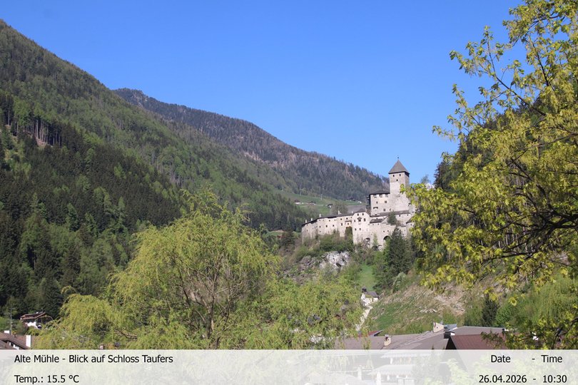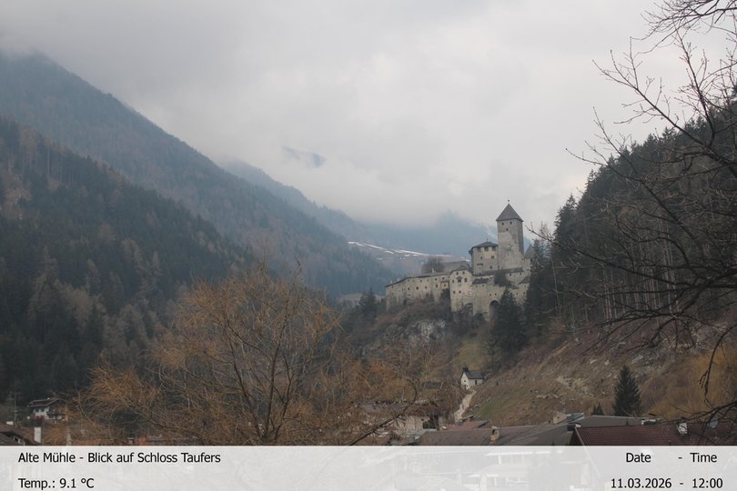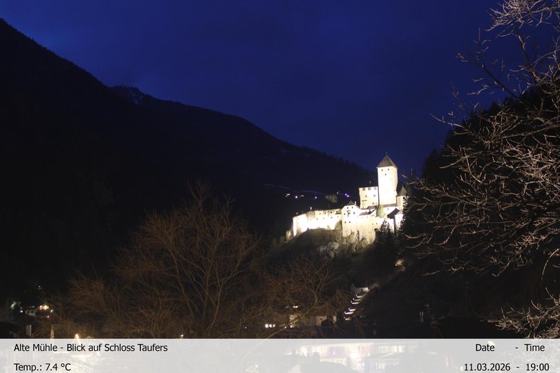 Il caratteristico Castello di Tures ripreso dalla webcam dell’Hotel Alte Mühle. Il castello, costruito tra il 1225 e il 1535, si erge su un promontorio che forma una chiusa naturale che dà inizio alla Valle Aurina e permette di osservare la Valle di Tures verso sud. Questa webcam consente di ammirare il Castello di Tures in qualsiasi momento e di verificare le condizioni meteo e della neve in Val di Tures, all'imbocco della Valle Aurina.