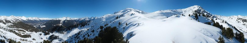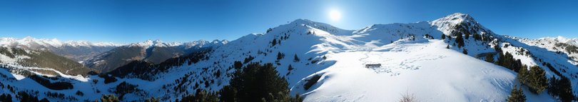 Panorama dalla cabinovia Speikboden verso il Ristorante a monte Speikboden nell’omonimo Comprensorio sciistico. Sullo sfondo il Monte Spico. Dai un’occhiata a questa webcam per scoprire le condizioni meteo di questa zona della Valle Aurina.