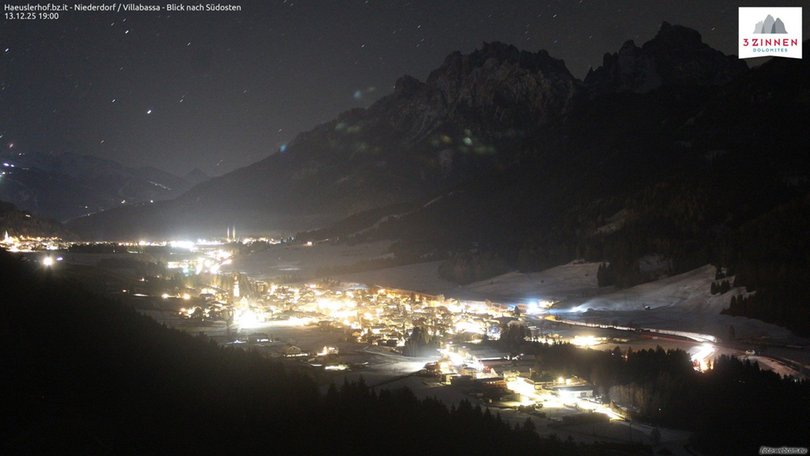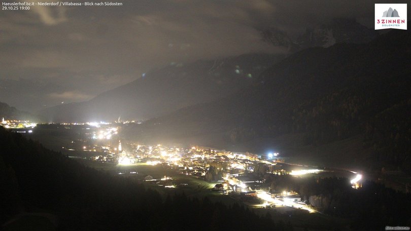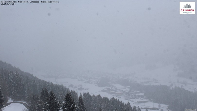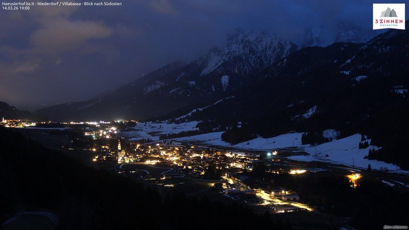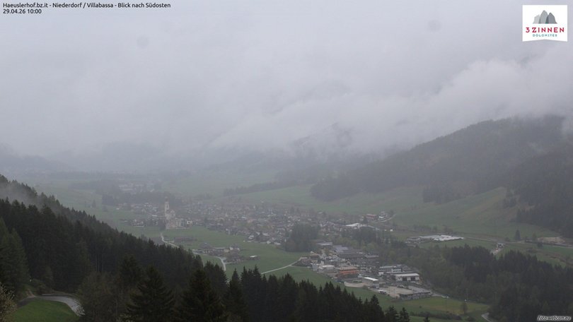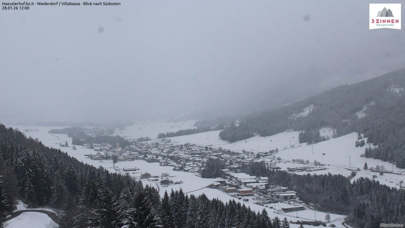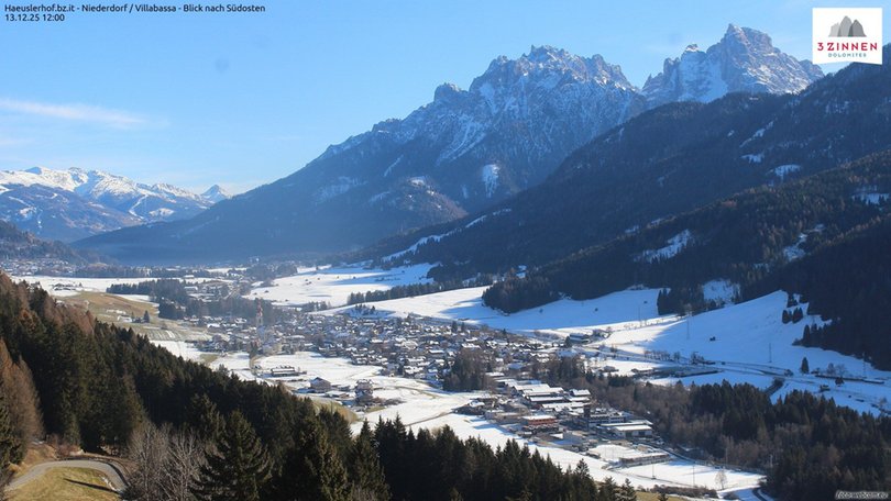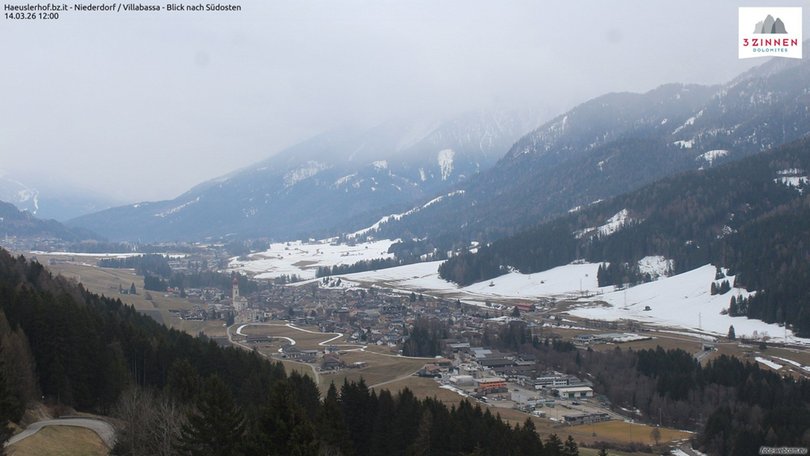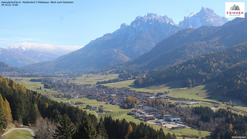 Panorama da Villabassa in direzione sud-est lungo la Val Pusteria. Sullo sfondo le Dolomiti di Sesto. Questa webcam è ideale per tenere d'occhio le condizioni meteo in Alta Pusteria, tra Villabassa e Dobbiaco.
